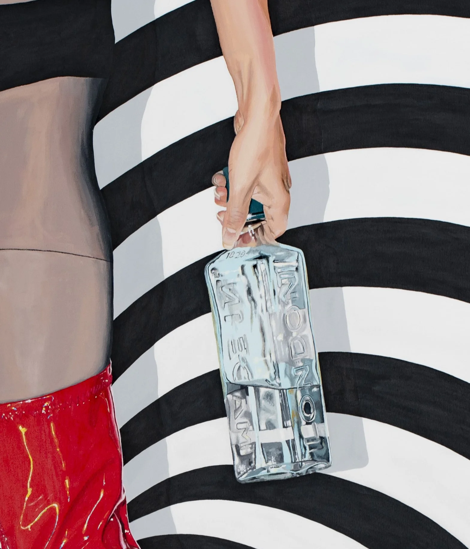 FRAU IN LACKSCHUHEN, MIT FLASCHE